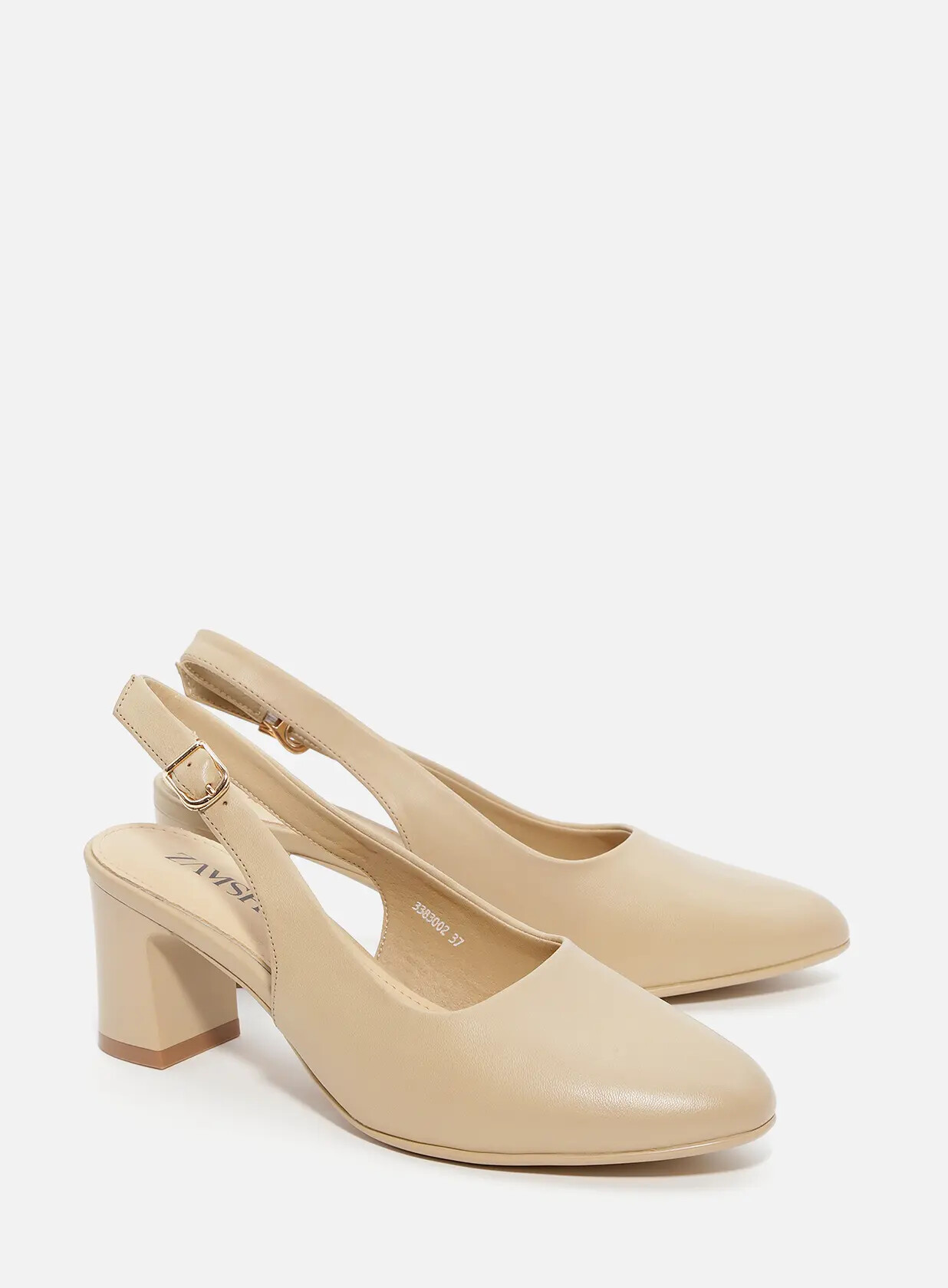 נעליים עם פרונט קלאסי מחודד מעוגל בקצה, רצועה עוטפת את  הקרסול אבזם סגירה צדי ועקב עבה יציב.