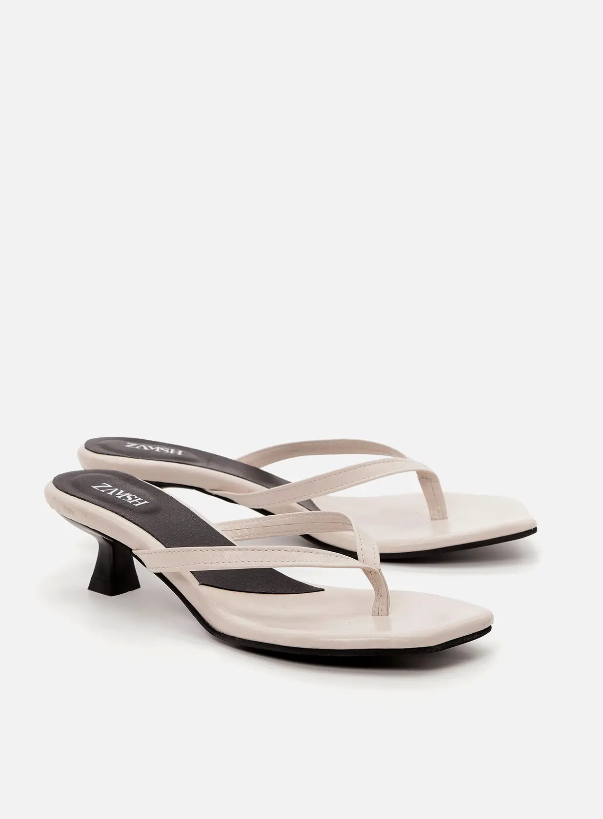 כפכפי עקב אצבע מעור, סיומת ישנה מלפנים, שתי רצועות דקות בצורת V לאורך הרגל.