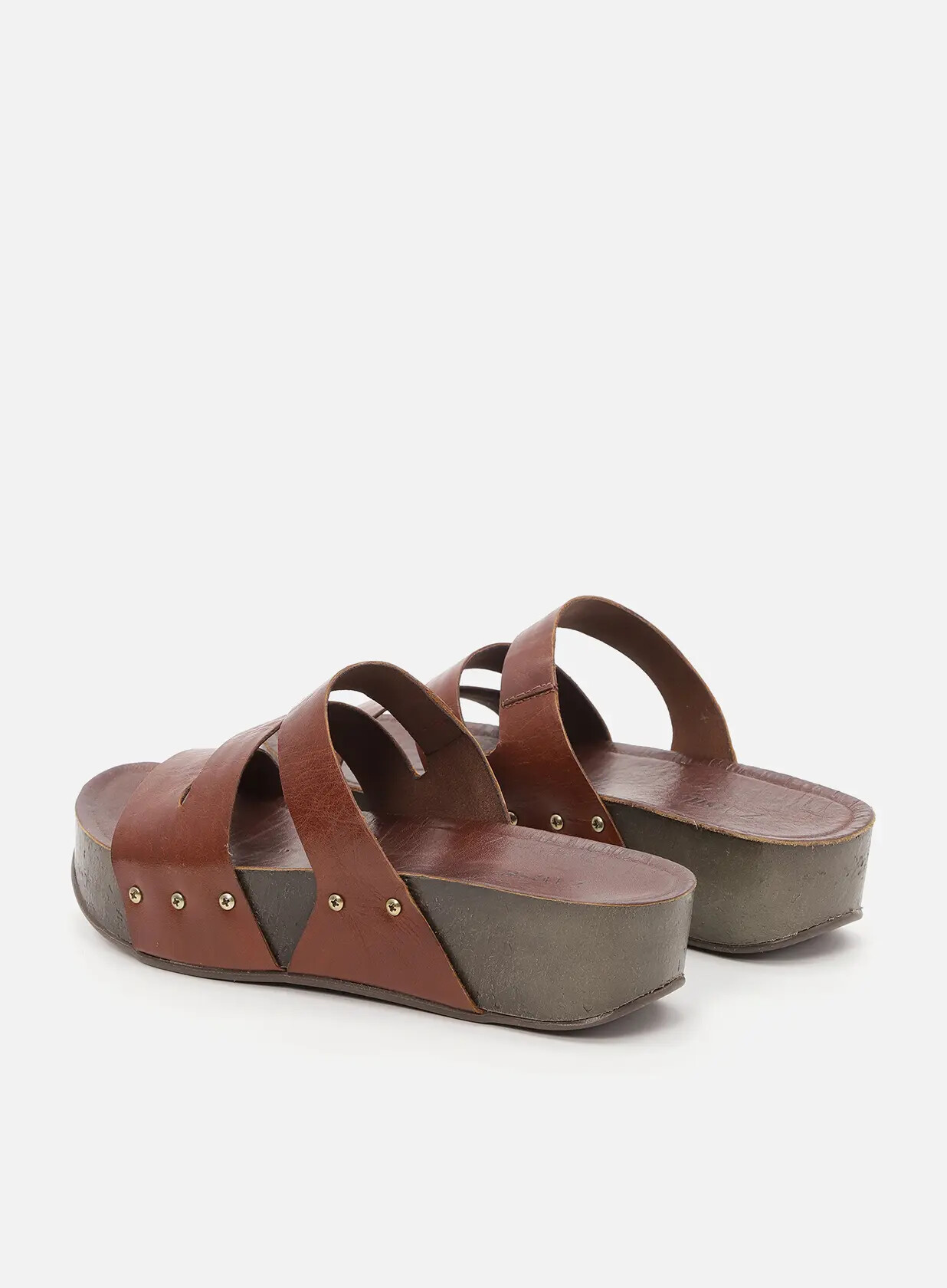 כפכפי פלטפורמה מעור מבריק ואיכותי רצועות עור אסימטרי ופרונט חושף בהונות, ניטים זהובים, סוליית פלטפורמה נוחה במיוחד