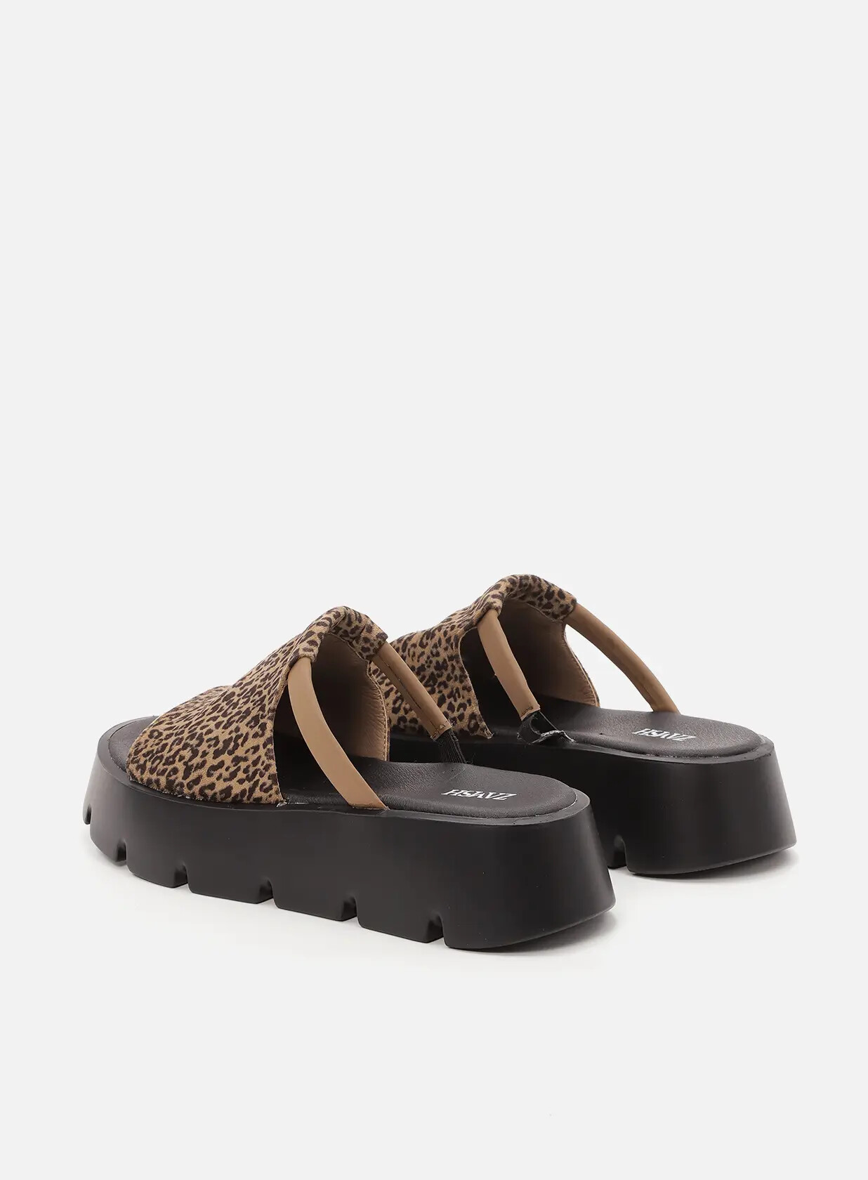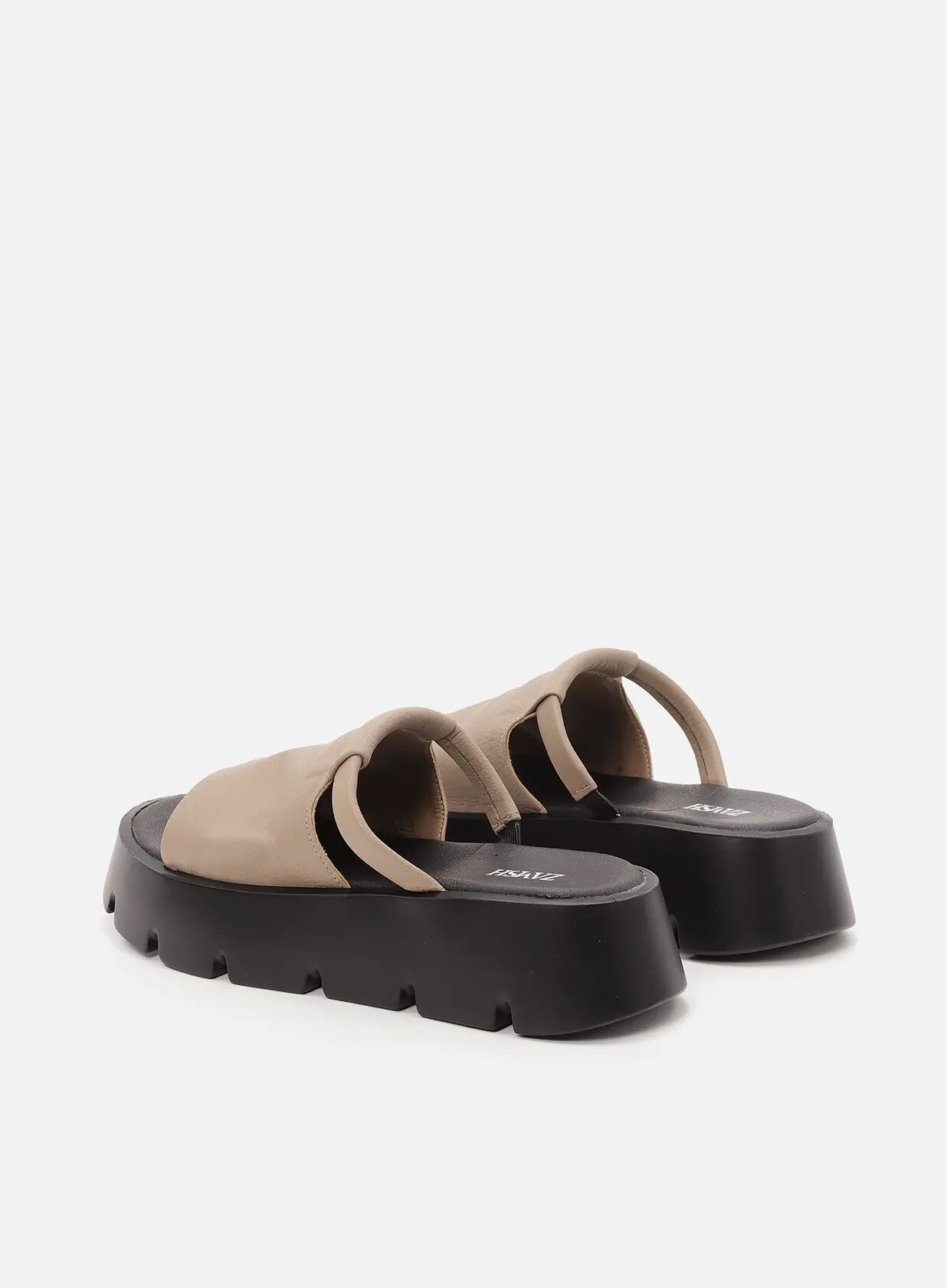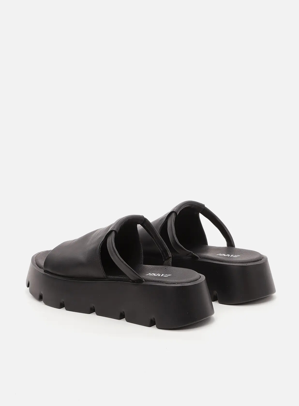 כפכפי פלטפורמה עשויים עור משובח עם פרונט פתוח מלא נוכחות וסוליית טרקטור שחורה.
