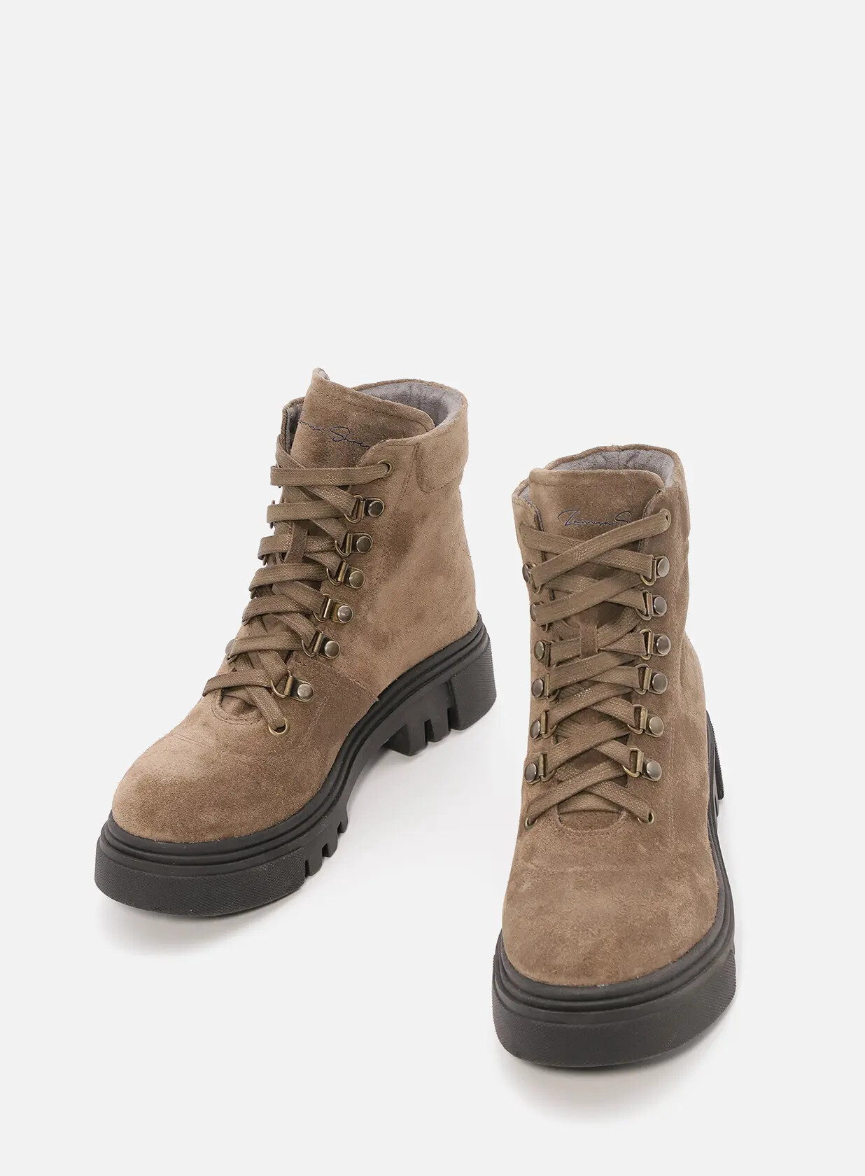 מגפוני קומבט עשויים מזמש  עם סוליית טרקטור האהובה בשילוב שרוכים הם המגפונים הכי מושלמים העונה יחמיאו לכל לוק.