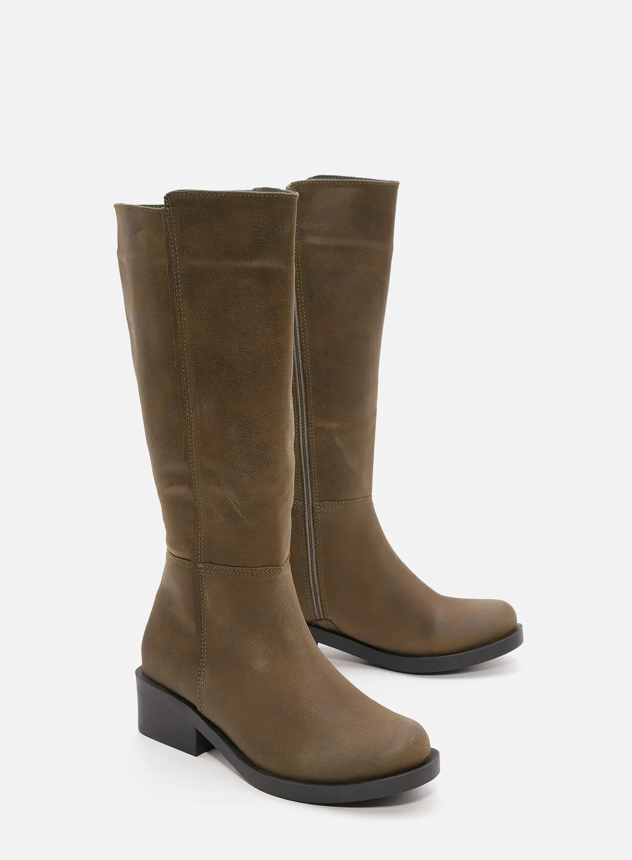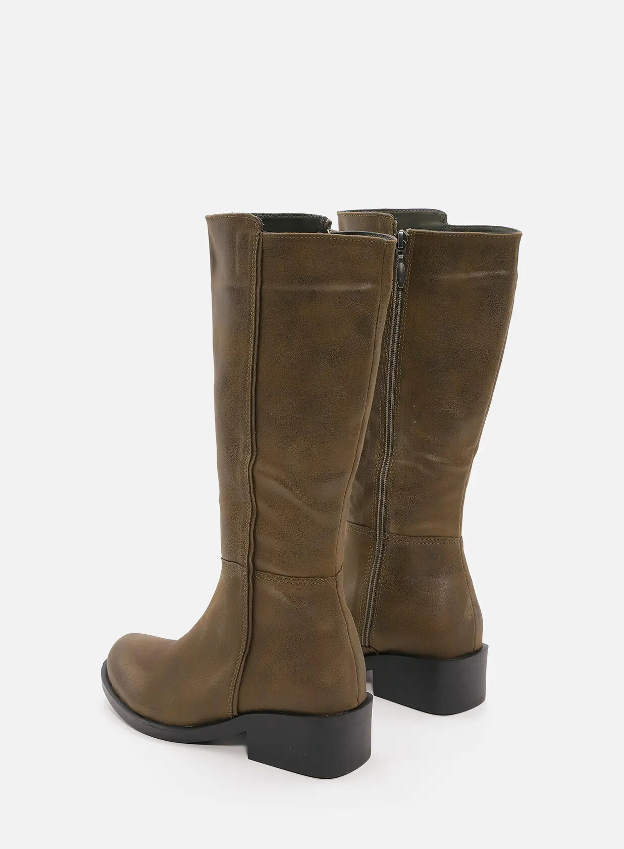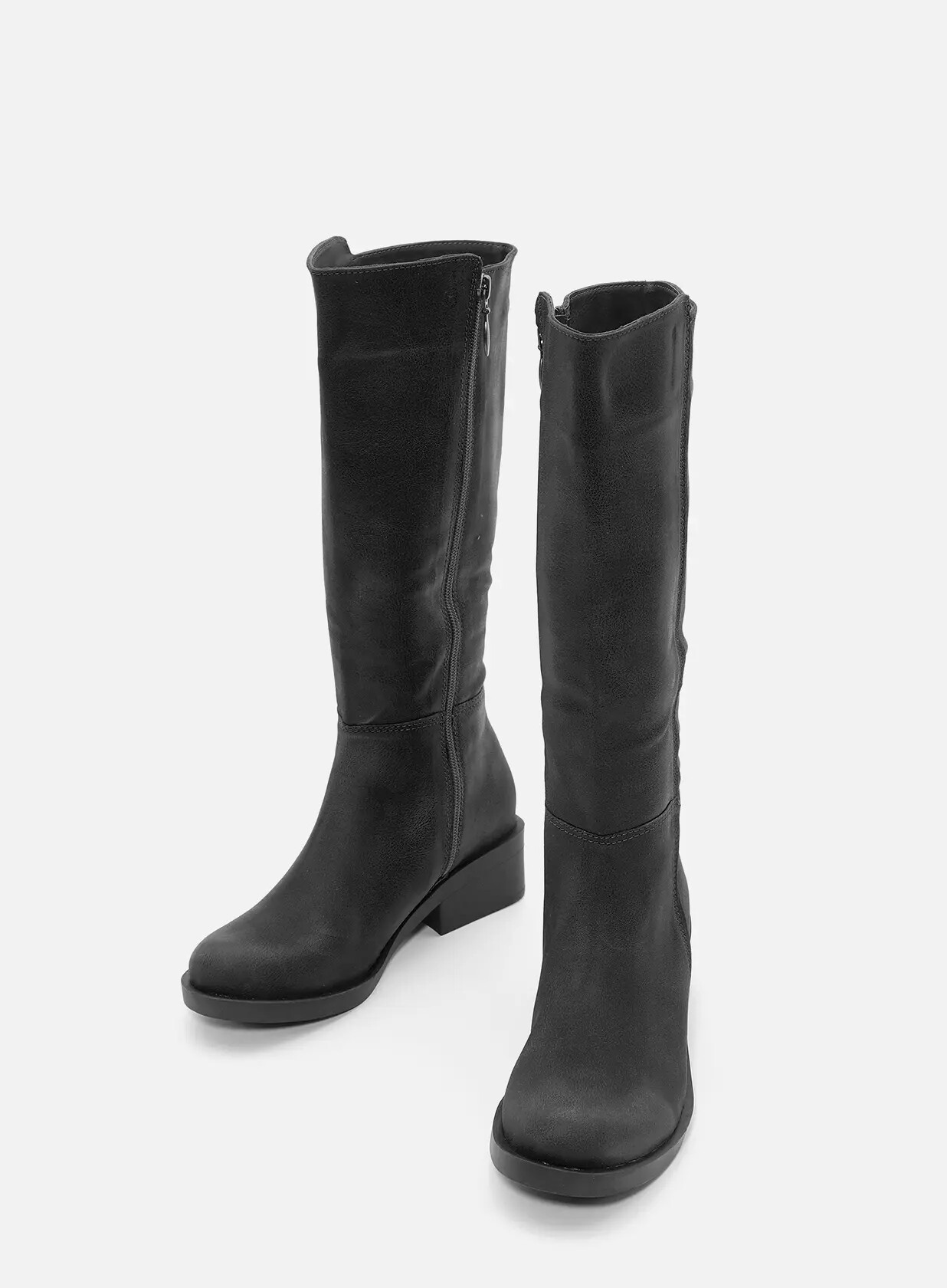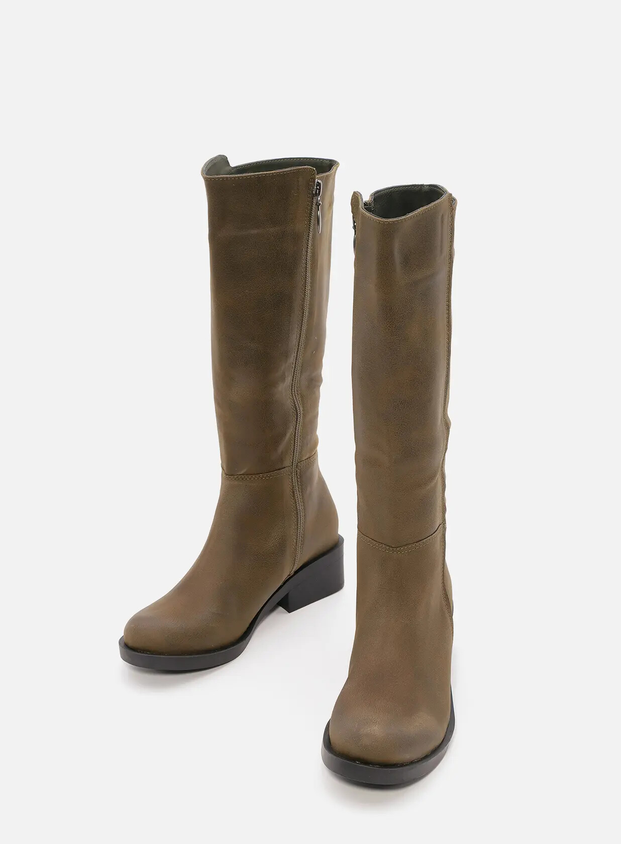 מגפיים גבוהים מבד טבעוני מיקרו איכותי ורך, פרונט מעוגל, רוכסן צד לאורכו הפנימי של המגף לנעילה קלה ונוחה.