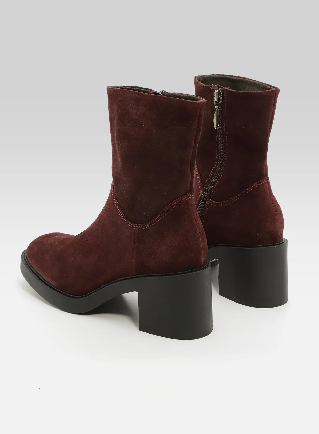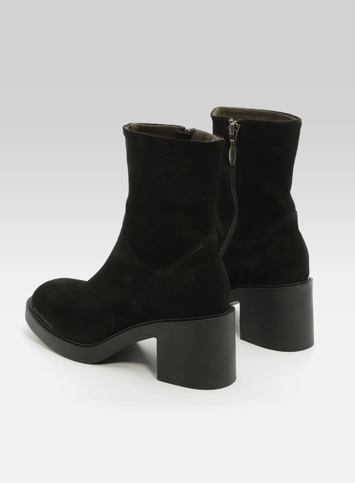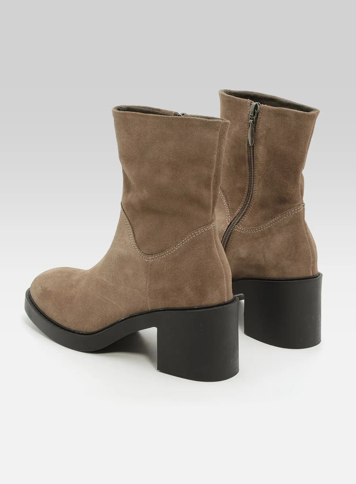 מגפון עשוי עור זמש עם רוכסן פנימי בעיצוב מינימליסטי  – משדר סטייל בוגר, נקי ואלגנטי.