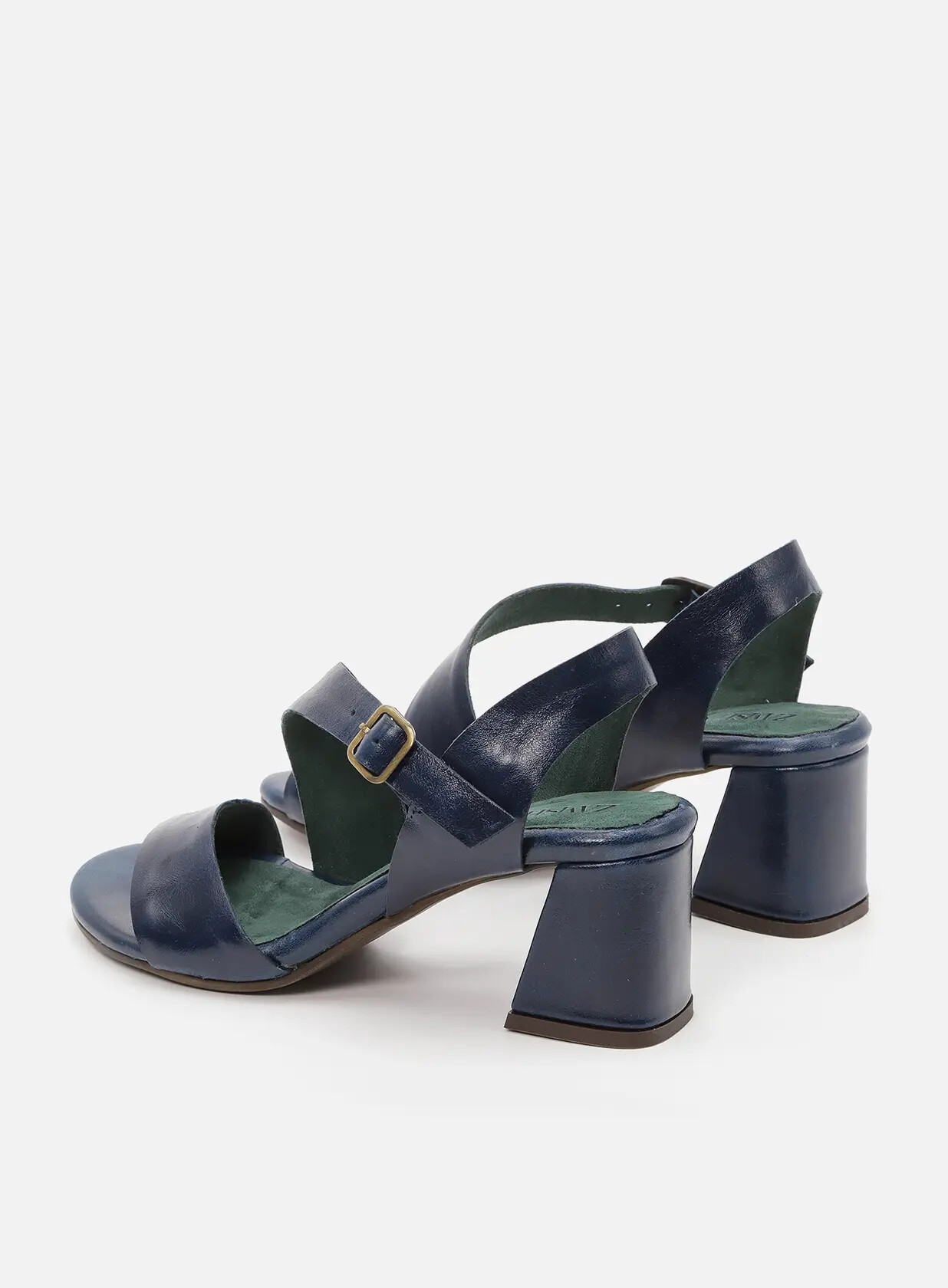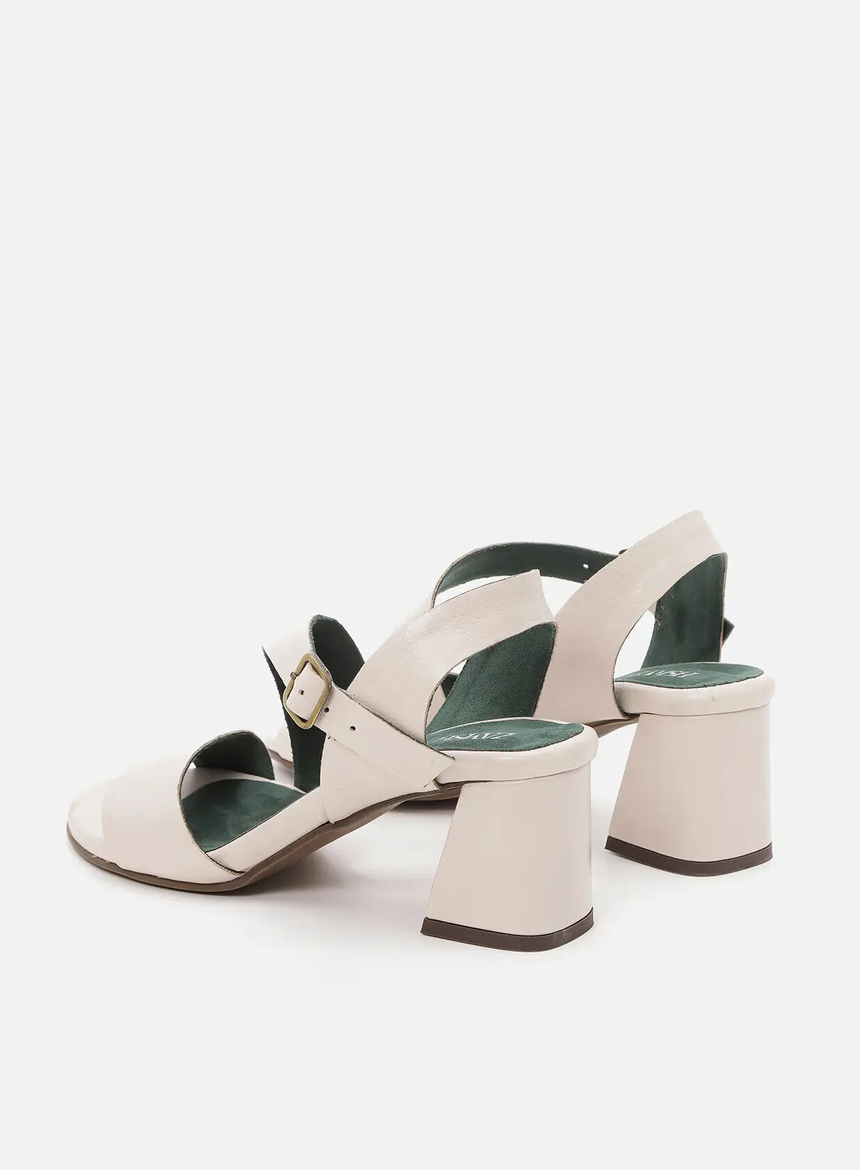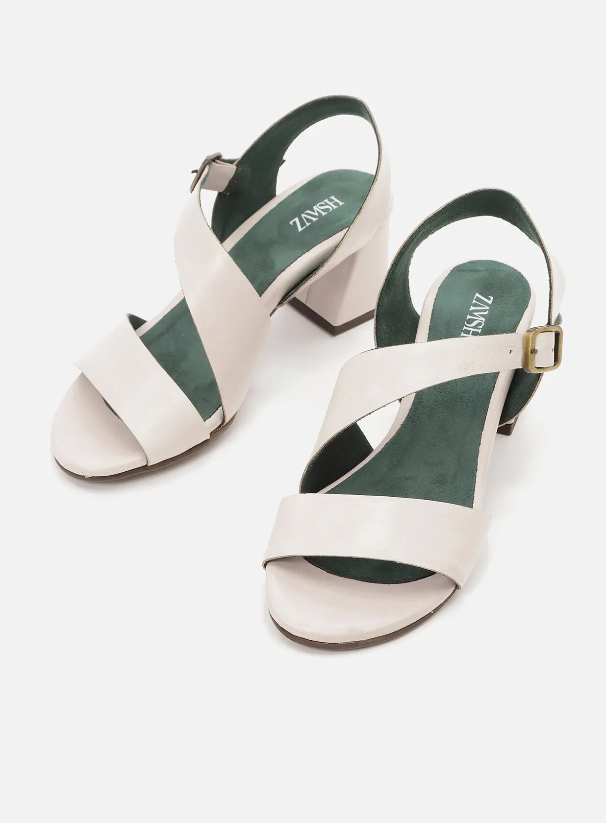 סנדלי עקב מעור משובח מושלמים לעונת האירועים והריקודים, עם רצועת עור עבה קדמית רוחבית, רצועה נוספת אסימטרית ורצועה סביב הקרסול,  עקב עבה ליציבות ונוחות.